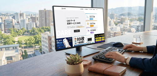 DARE はブラウザだけで DWG・DXF・JWW・PDF などを相互変換・バージョンダウンができる無料サービスです。