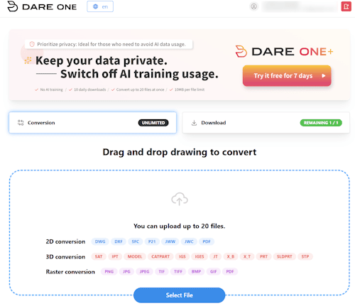 DARE ONE+ unlocks batch conversion capabilities and lifts large file size limits, allowing you to sanitize and convert entire project folders all at once.